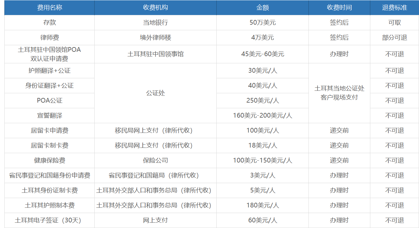 2、在土耳其运营的银行中至少存入等值50万美元(3年后可取出)。